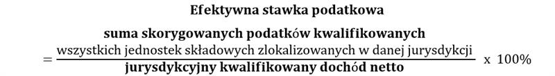 Efektywną stawkę podatkową (ETR) ustala się na poziomie danej jurysdykcji, łącznie dla wszystkich jednostek działających w danym państwie. Obliczenia trzeba będzie przeprowadzać osobno dla każdego roku podatkowego, a obowiązek wykonania testu ETR spoczywa na jednostce dominującej w grupie.