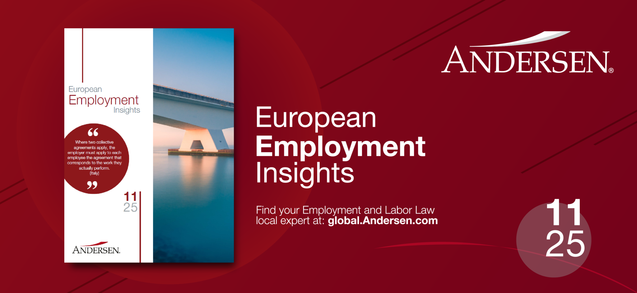 We are pleased to present the November edition of the Andersen European Employment Insights newsletter. Prepared by Andersen’s team of experts across Europe, this issue provides a detailed overview of the latest developments in employment law, regulations, case law, and collective agreements in 18 countries.